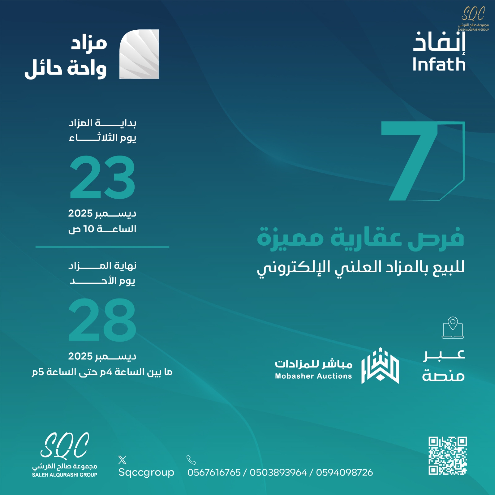يبدأ المزاد في تاريخ 23-12-2025 الساعة 10 ص